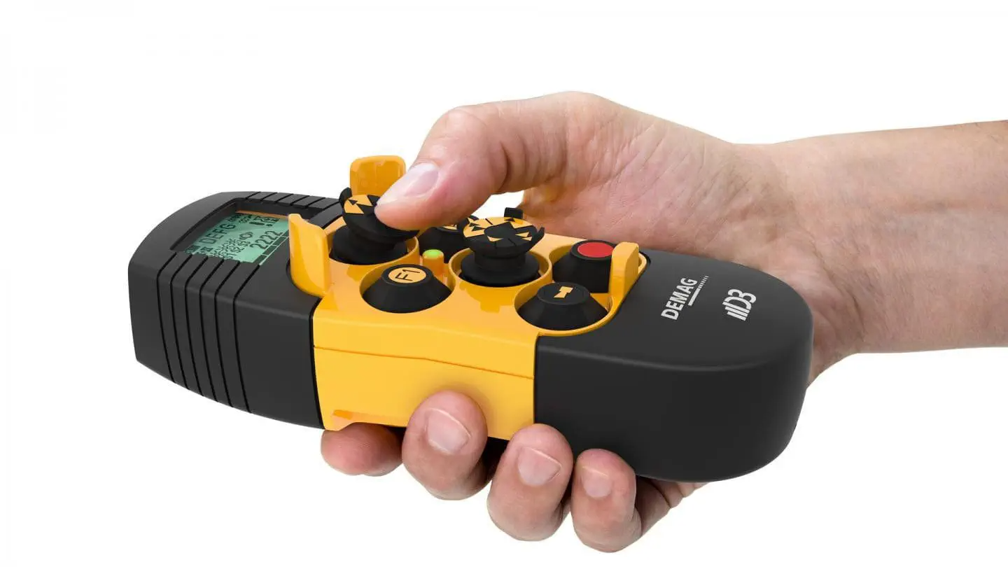 С помощью портативного передатчика Demag DRC MJ Вы можете безопасно и точно управлять Вашими кранами, полностью сосредоточившись на погрузочно-разгрузочных работах. Управляя краном с помощью двух джойстиков, вы можете интуитивно и легко перемещать его на трех уровнях - и всегда держать груз в поле зрения. Этот передатчик идеально подходит для интуитивного управления одной рукой, так как одним большим пальцем можно точно управлять комбинированными движениями крана и крана. Видимый Яркий, высококонтрастный дисплей для отображения рабочих состояний, информации о нагрузке, уровне заряда и т.д. Точность Для длинных/перекрестных поездок: Механический замок с низкой частотой вращения (V1) Для индивидуальных нужд Индивидуально программируемые электронные ворота Осязаемый Интерфейс человек/машина: активное предупреждение, выдаваемое датчиком с вибрационным сигналом тревоги, который можно почувствовать, например, при перегрузке Эргономичный Джойстики для интуитивного управления одной рукой Безопасность Ребра предотвращают случайное срабатывание