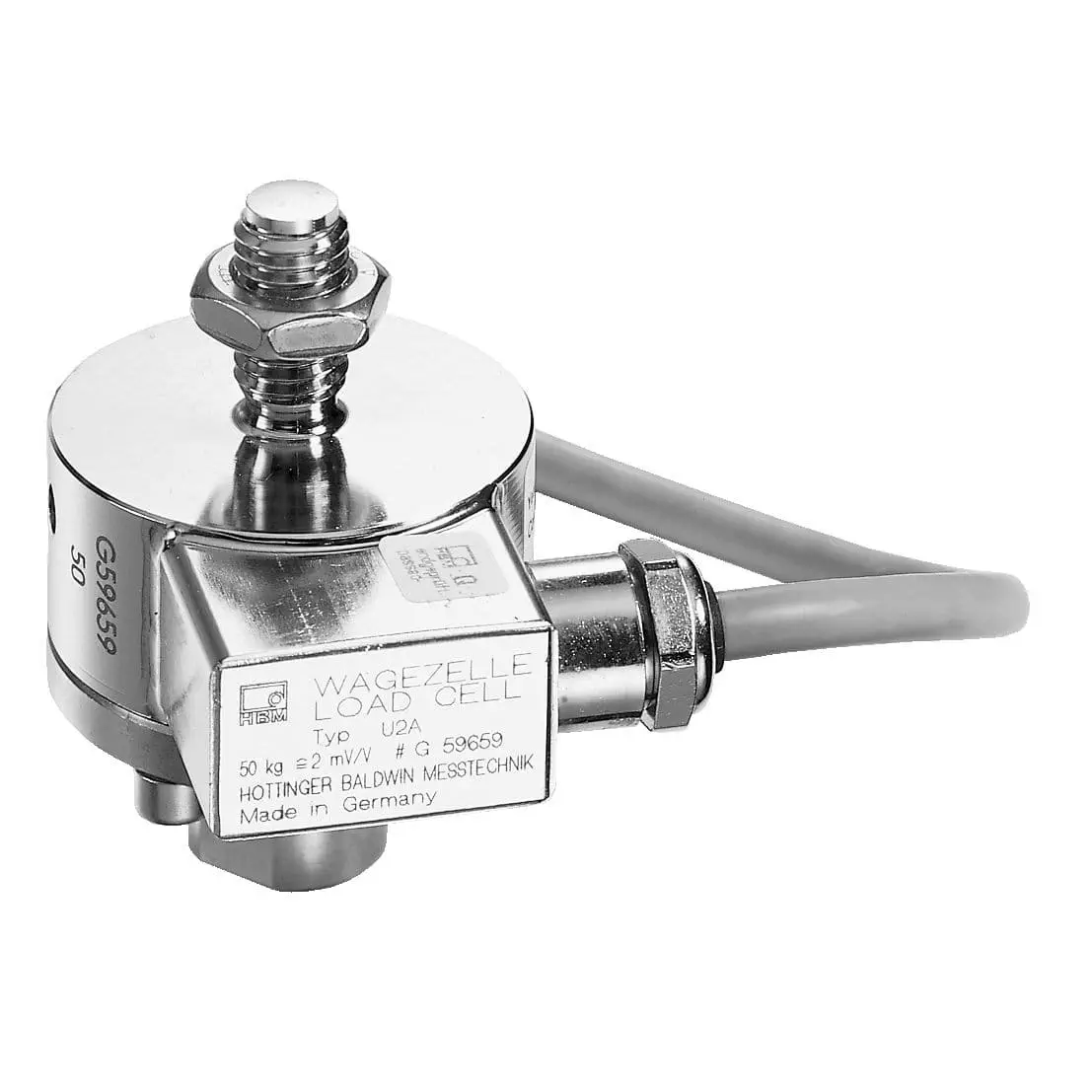 Идеально подходит для использования в весах с подъемным механизмом в жестких условиях эксплуатации Тензодатчик растяжения/сжатия U2A из нержавеющей стали допускает торговлю до 1000 делений и благодаря своей прочной конструкции может применяться повсеместно, например, для взвешивания подвесных резервуаров. Тензодатчик растяжения/сжатия U2A легален для торговли Тензодатчик U2A зарекомендовал себя в тысячах применений и выпускается с максимальной грузоподъемностью от 50 кг до 20 т. Варианты с максимальной грузоподъемностью 500 кг, 1 т, 2 т и 5 т соответствуют классу точности D1. Кроме того, тензодатчик U2A выпускается с другими значениями максимальной грузоподъемности и классами точности (0,1 и 0,2). Соответствие классу точности D1 позволяет использовать датчик в весах класса III с разрешением до 1000 делений в соответствии с OIML R60. Это могут быть, например, подвесные резервуары, конвейерные или дозирующие весы, а также гибридные весы. Еще одна важная область применения - гравиметрическое измерение уровня. Классы точности: D1, 0,1%, 0,2% (в зависимости от максимальной вместимости) Максимальная грузоподъемность: 50 кг / 100 кг / 200 кг / 500 кг / 1 т / 2 т / 5 т / 10 т /20 т Принцип измерения: Тензометрический полный мост в 6-проводной конфигурации Исполнение: Нагрузка на растяжение/сжатие; предпочтительное направление: Растяжение Плоская и компактная конструкция: начиная с диаметра 50 мм Нержавеющая сталь Защита от пыли и воды в соответствии со стандартом IP67 Широкий диапазон рабочих температур: от -30 °C до, опционально, +120 °C Опционально возможно исполнение во взрывозащищенном исполнении (IECEx-ATEX и зона EAC) Универсальное применение в жестких условиях эксплуатации